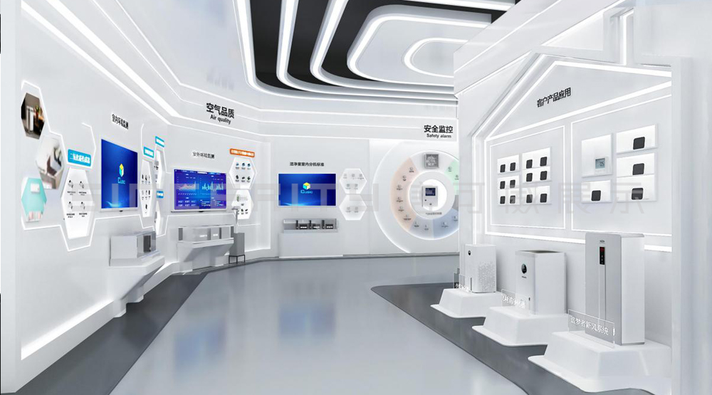 本次展館設(shè)計色彩是以海洋藍(lán)、暖白為主要搭配色,力求表現(xiàn)企業(yè)整體形象,既體現(xiàn)時代感,又能突出企業(yè)特色,將企業(yè)文化理念融合其中,貫穿于整個展廳,在展示企業(yè)形象的同時,感受精神層次的內(nèi)涵。